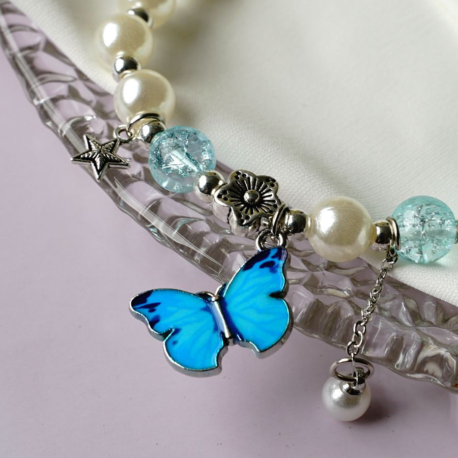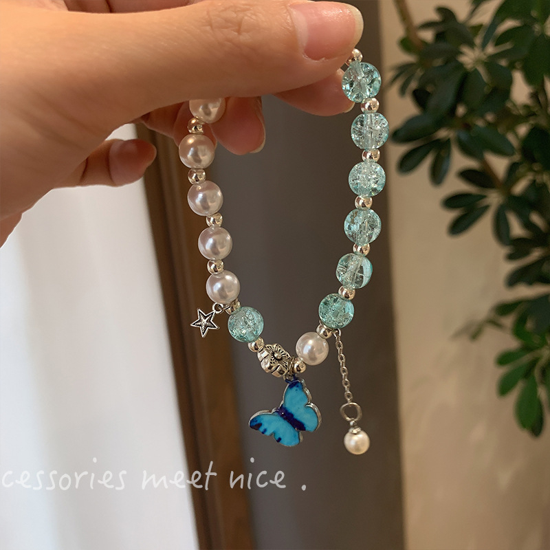 Detail Ins Angin Kupu-Kupu Kristal Manik-Manik Gelang Es Retak Mutiara Gadis Handwear Bracelet