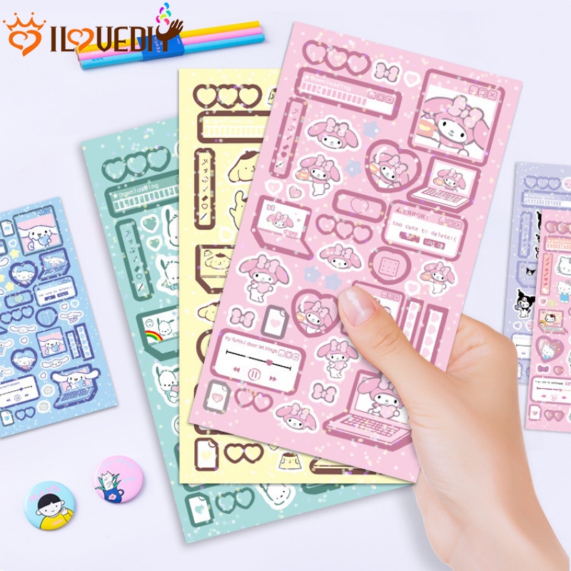 Ins Gadis Guka Stiker Kepribadian Tangan Akun Dekoratif Stiker Sanrio Kartun Stiker Kreatif Kucing Kecil Kartu Stiker Kreatif Berkilau Stiker Alat Tulis Stiker