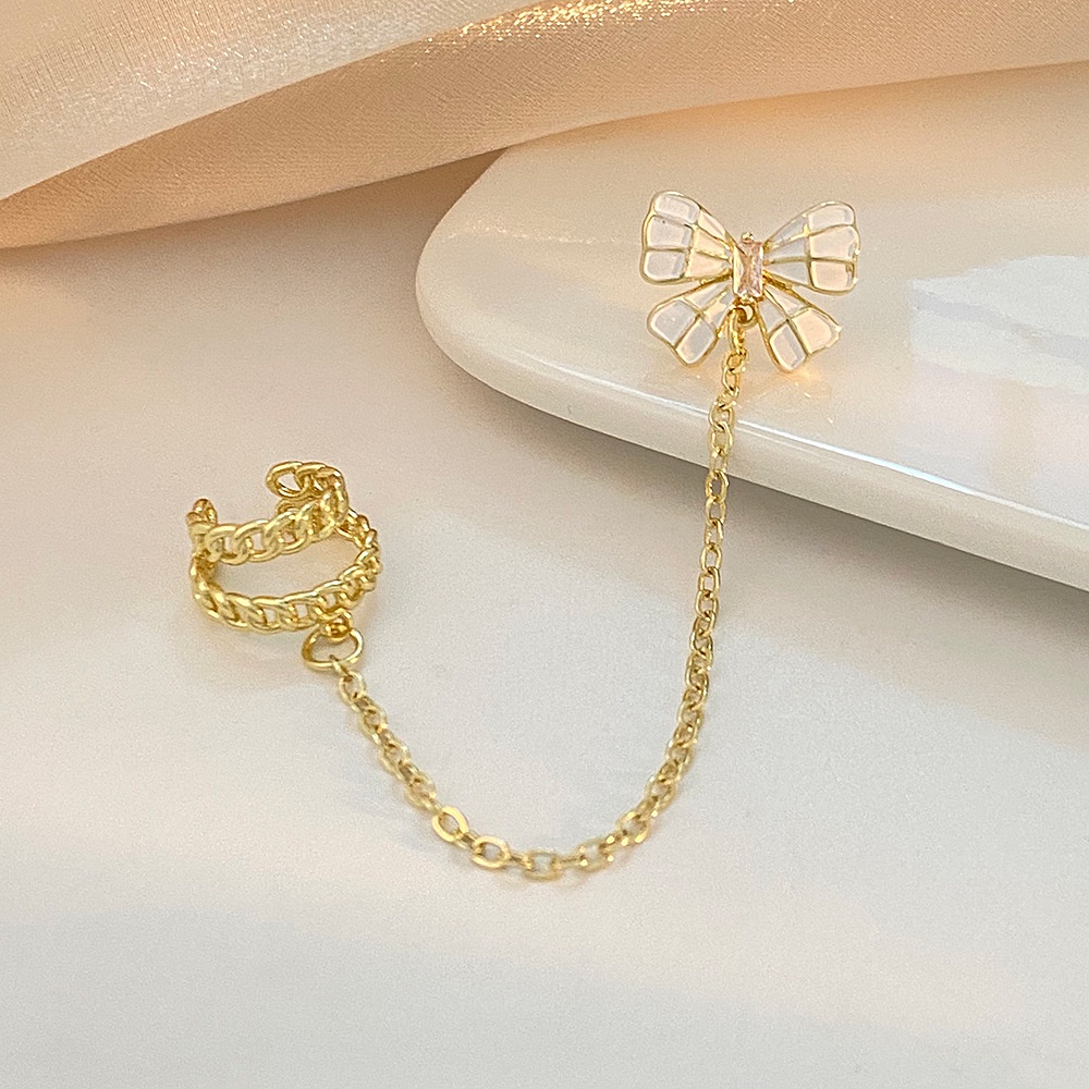 Detail Ins Gaya Modis Emas C-type Rumbai Telinga Klip Tunggal Zirkon Kupu-Kupu Anting Logam