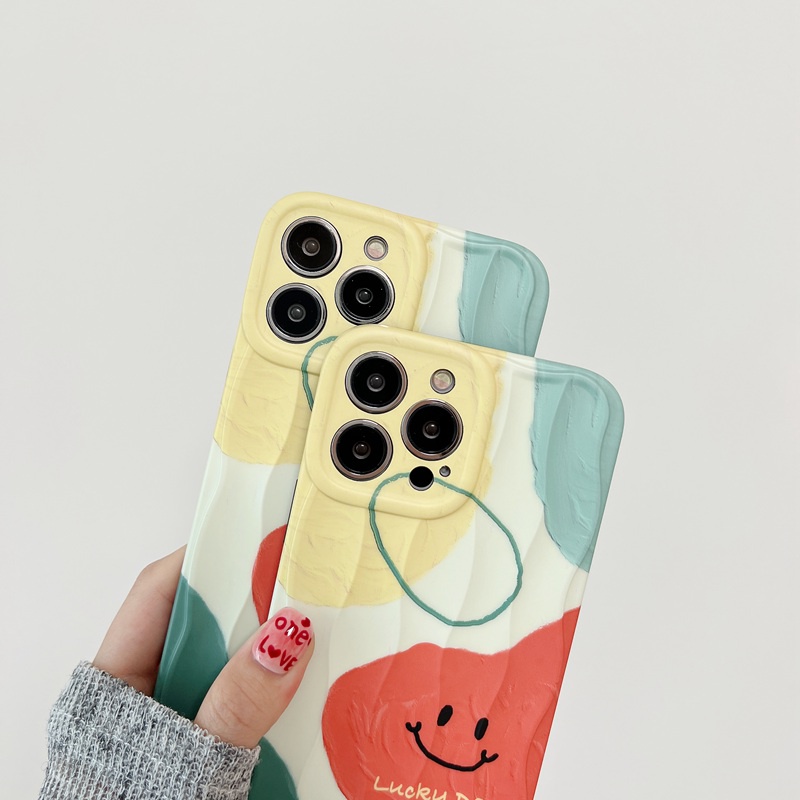 Handphone & Aksesoris > Casing & Skin > Casing & Skin Handphone > INS Geometry Smile Soft Silicon Case HP iP iPhone 14 + Plus 12 13 Pro Max 11 IMD Lucky Day Casing Apple
