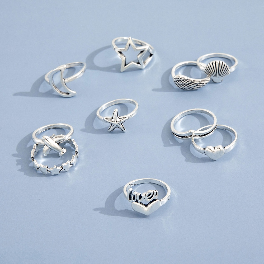 Detail Ins Kepribadian Retro Inggris Cinta Bintang Bulan Pesawat Bintang Laut Shell Cincin