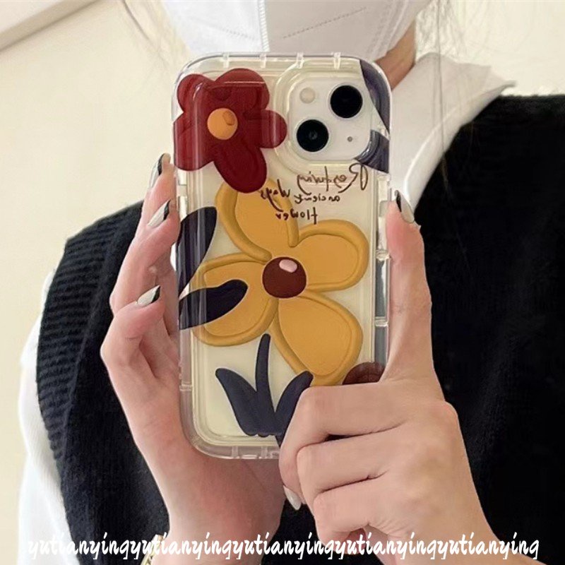Handphone & Aksesoris > Casing & Skin > Casing & Skin Handphone > Ins Korea Flower Case Kompatibel Untuk iPhone XR 7plus 14 Pro MAX 11 13 12 Pro MAX 7 8 6 6S Plus X XS MAX 8plus SE 2020 Lukisan Minyak Bunga TPU Lembut Shockproof Airbag Phone Cover
