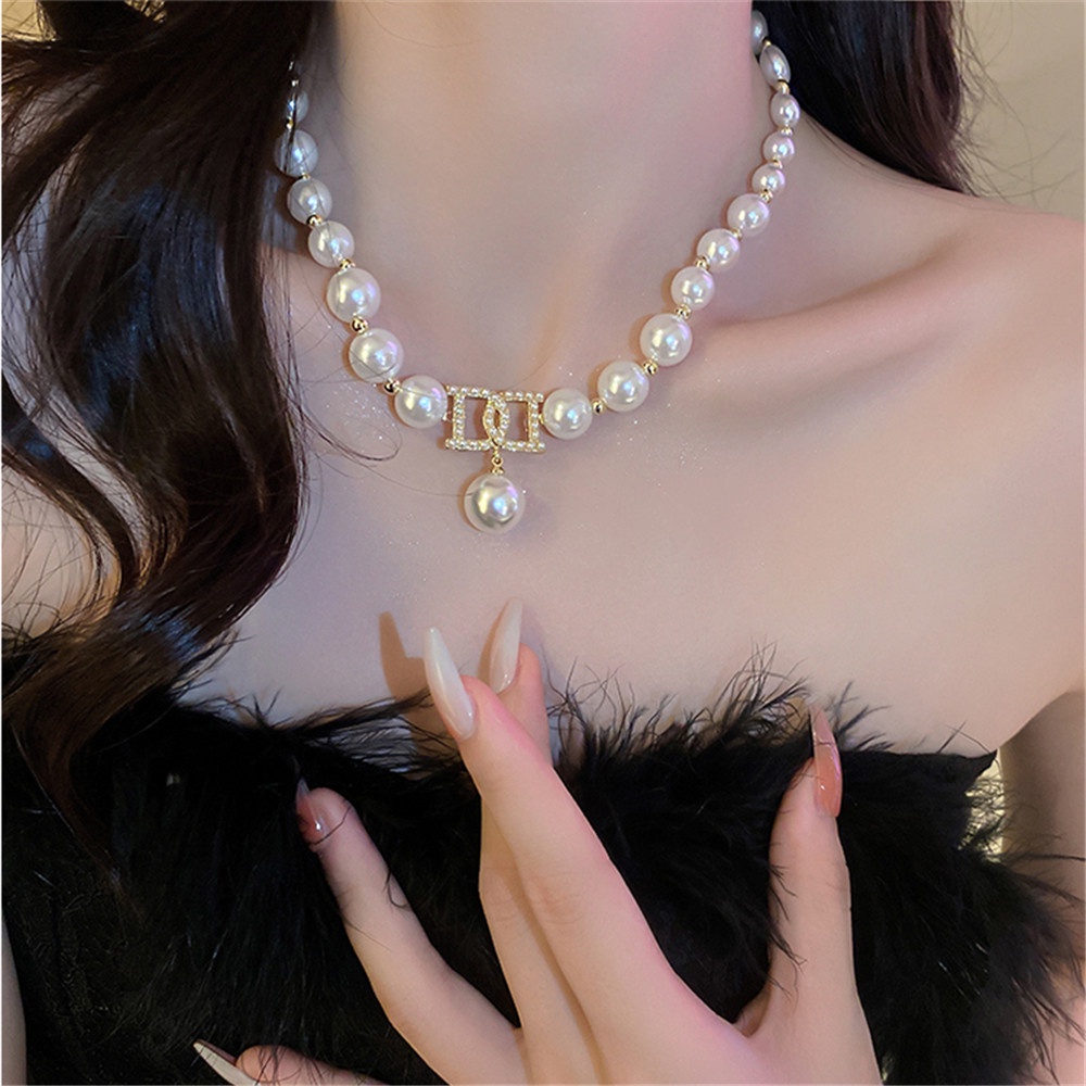 Detail Ins Korea Mutiara Manik-Manik Huruf Chocker Kalung Mutiara Untuk Wanita Hadiah Hari Valentine Perhiasan Pesta Mewah