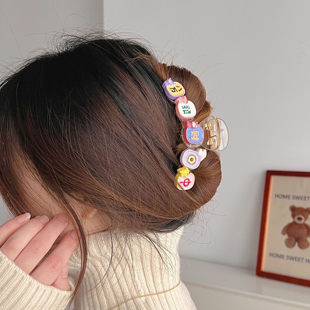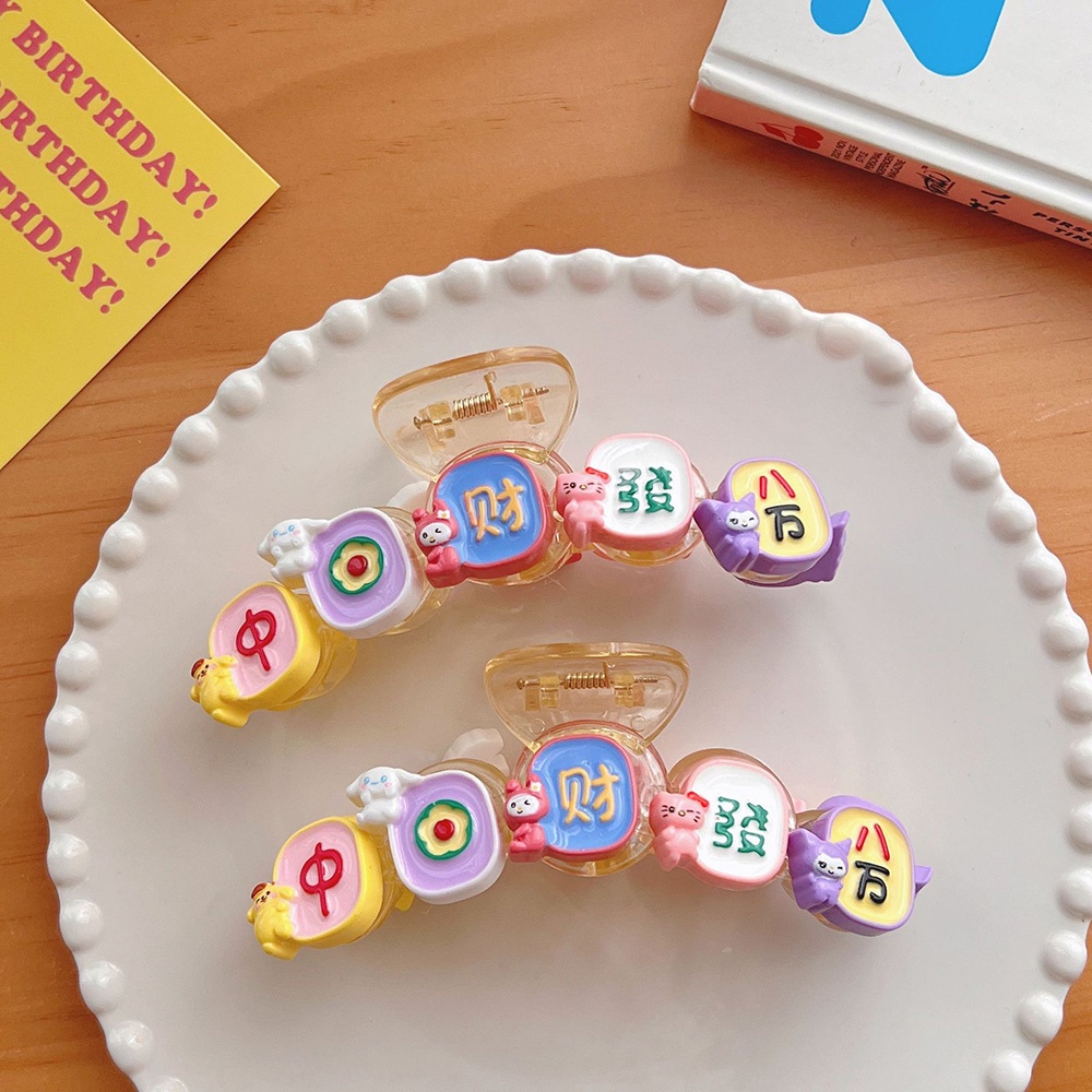 Detail Ins Kreatif Elemen Cina Cream Hiu Klip Fashion Lucu Pola Mahjong Jepit Rambut Hiasan Kepala