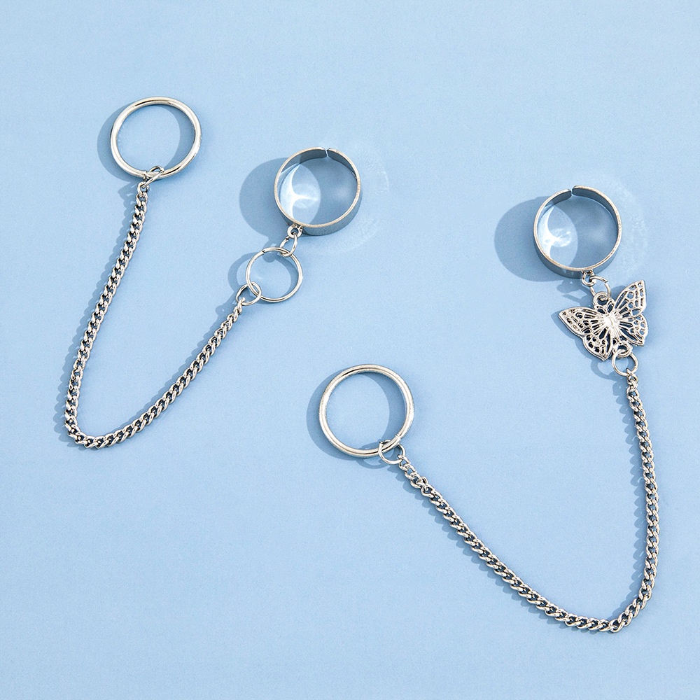 Detail Ins Kreatif Rantai Kupu-Kupu Jari Cincin Halus Polos Cincin Cincin Desain Rasa Kelompok Kecil Senior Rasa Cincin Wanita