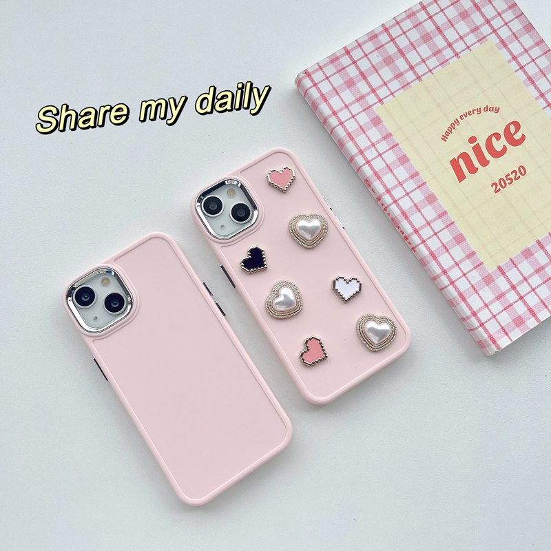 Handphone & Aksesoris > Casing & Skin > Casing & Skin Handphone > INS Luxury Pink Love Button Soft Silicon Case HP iP iPhone 12 13 14 Pro Max 11 Girl Woman FTD Casing Apple