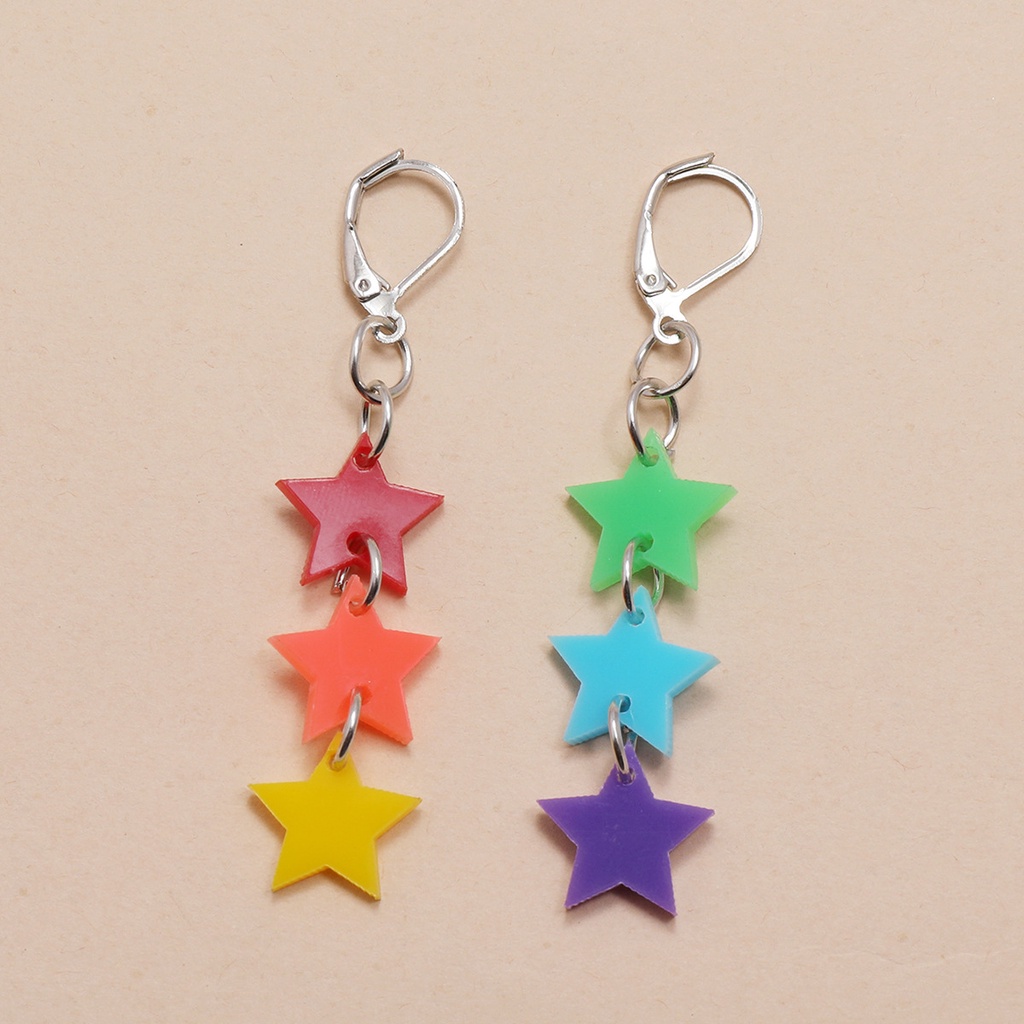 Aksesoris Fashion > Anting > Ins Pribadi Gantungan Kunci Cincin Gantung Pelangi Merah Orange Kuning Hijau Biru Ungu Akrilik Rumbai Bintang Berujung Lima Anting-Anting Bintang 1pasang