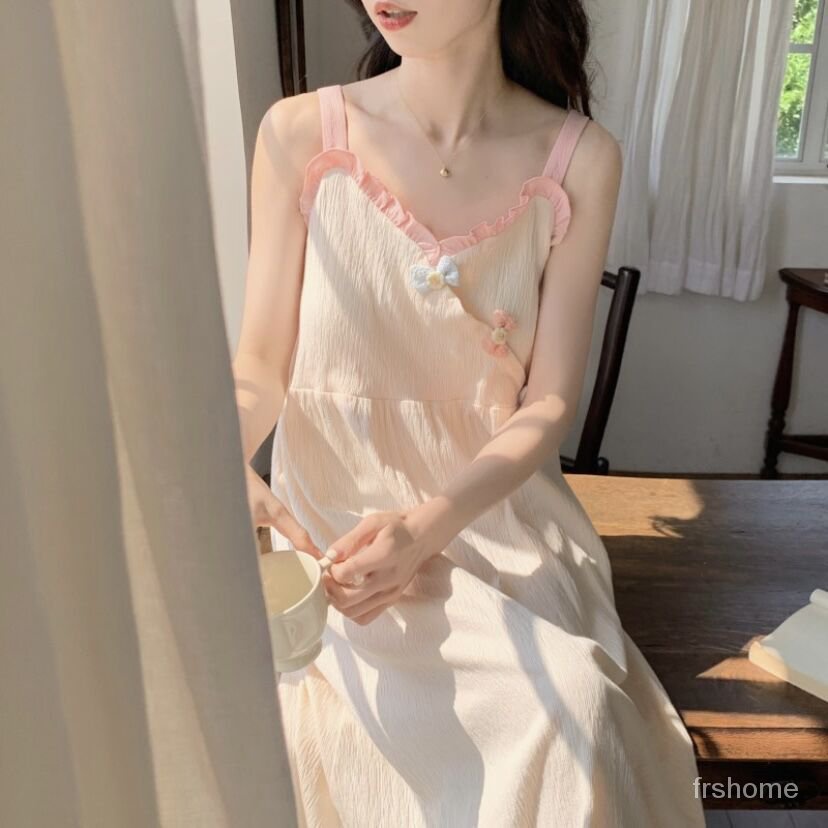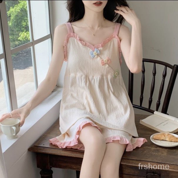 Detail ins putri angin dengan celana pendek suspender bantalan dada piyama baju tidur suspender ruffle wani