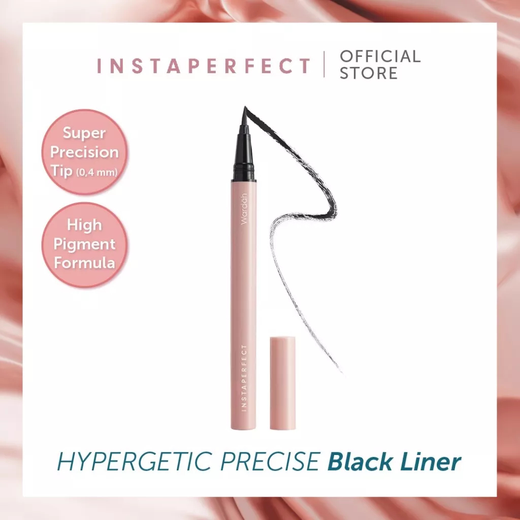 "Instaperfect Hypergetic Precise BLACK LINER adalah eyeliner spidol hitam dengan tingkat presisi brush hingga 0.4 mm dan high pigment formula yang menghasilkan garis yang presisi sempurna dan tajam.