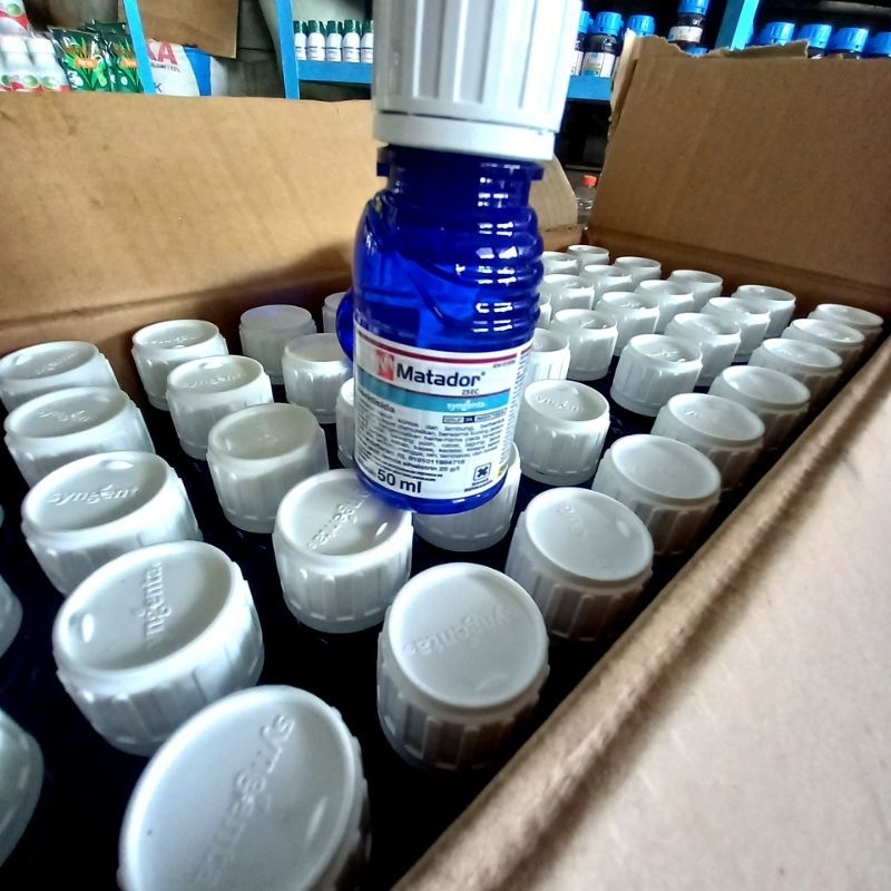 MATADOR 25 EC (50mL) merupakan insektisida racun kontak dan lambung, berbentuk pekatan yang dapat diemulsikan dalam air, berwarna kuning jerami untuk mengendalikan hama-hama pada tanaman bawang merah, bawang putih, cabai, jagung, jeruk, kacang panjang, kakao, kapas, kedelai, kelapa sawit, kubis, lada, lamtoro, manga, teh, tembakau dan tomat