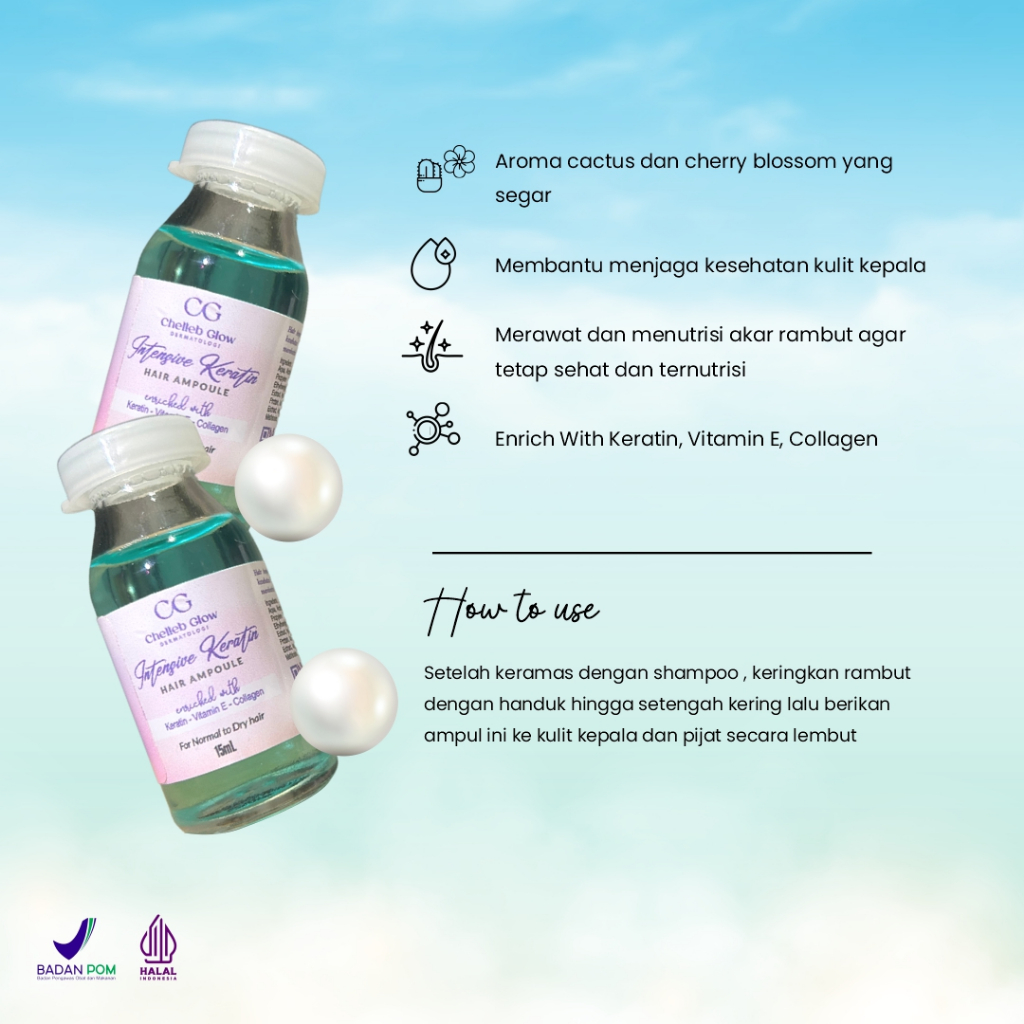 Cara Pakai : Setelah keramas dengan shampoo , keringkan rambut dengan handuk hingga setengah kering lalu berikan ampul ini ke kulit kepala dan pijat secara lembut.