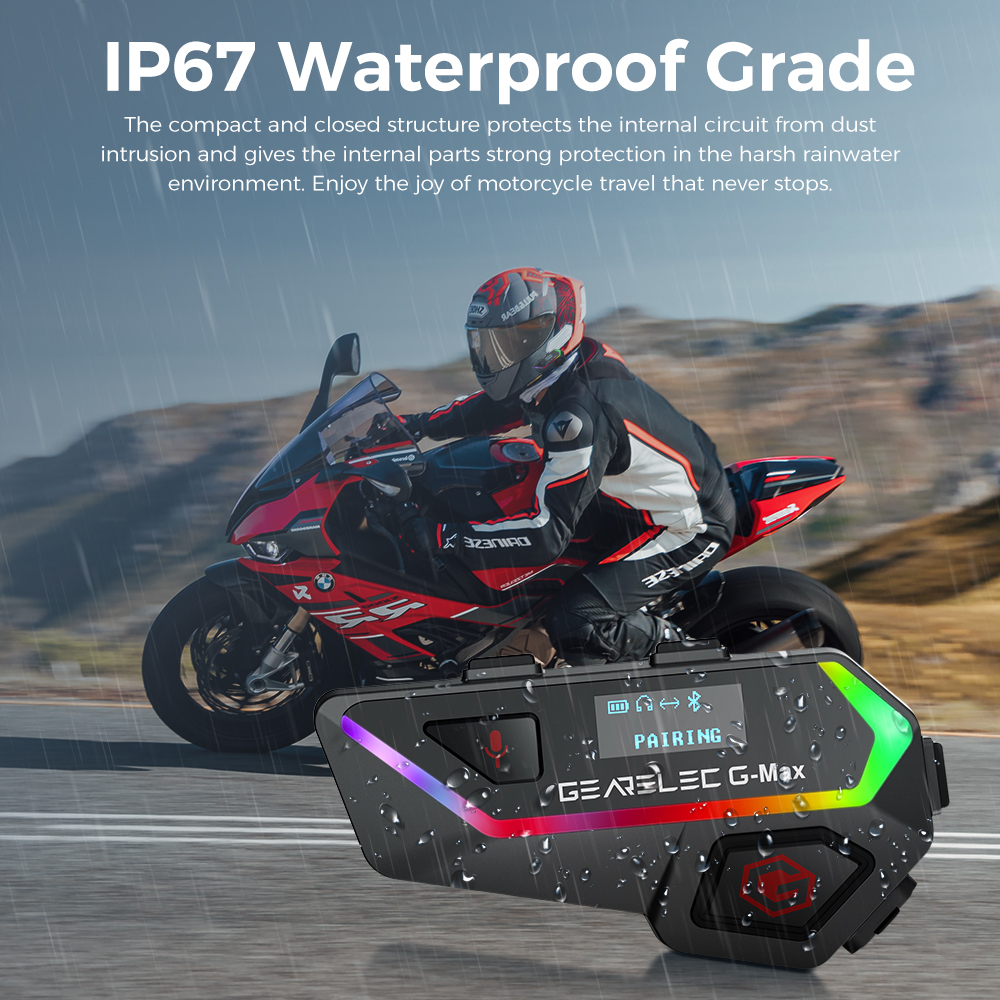 Otomotif > Aksesoris Pengendara Motor > Helm & Aksesoris Pengendara Motor > Intercom Helm GEARELEC G-Max Helm Sepeda Motor Headset Interkom Bluetooth 2000m 6 Pengendara BT 5.2 Sistem Komunikasi Nirkabel Interfon dengan Lampu Layar Pintar Music Sharing Radio FM