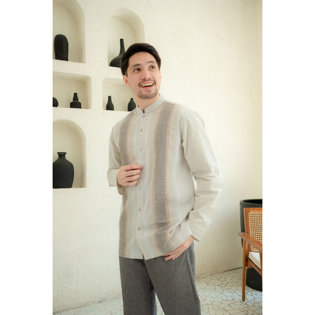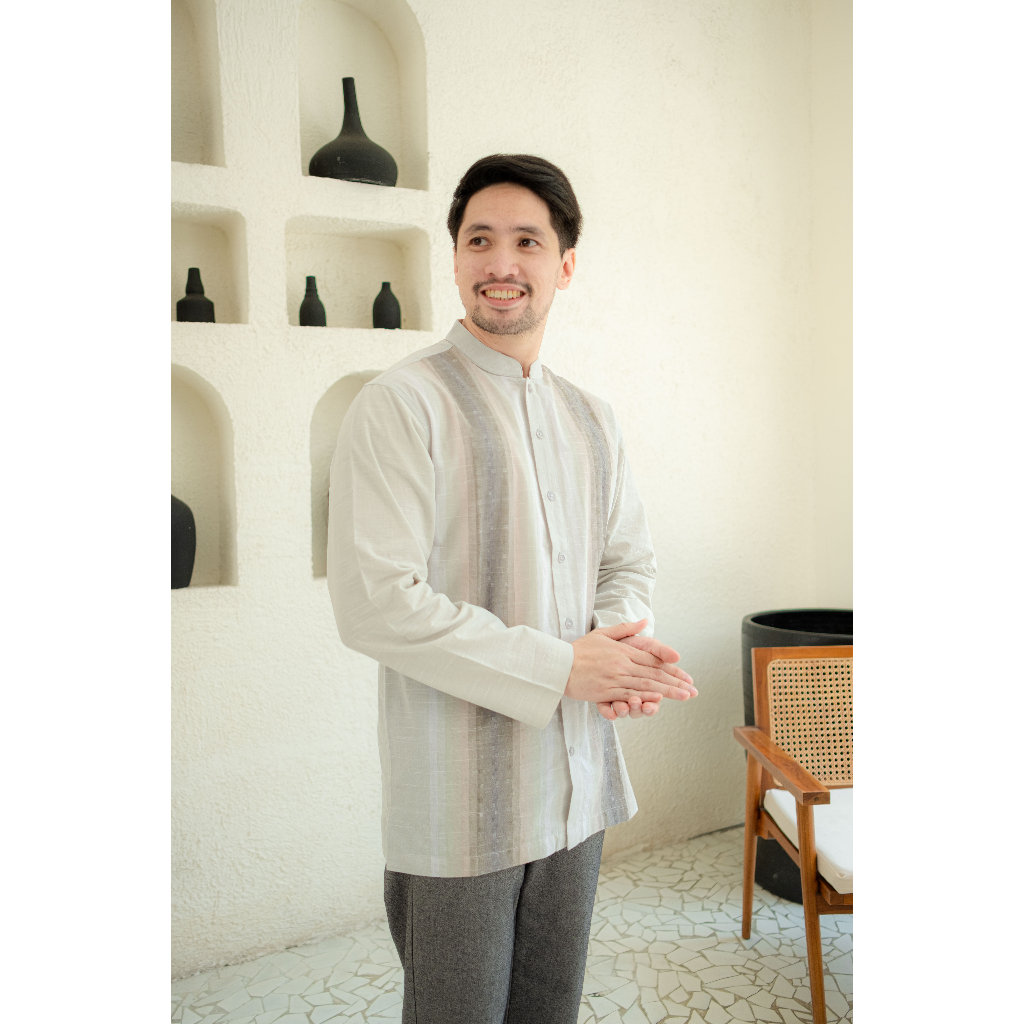 Detail Intresse Baju Koko Brogue Sage Lengan Panjang Tenun Ikat