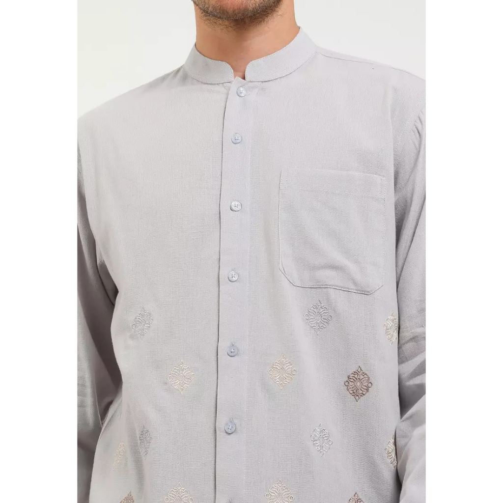 - Kemeja koko detail bordir dengan balutan warna earthy - Warna abu-abu - Detail kerah - Unlined - Regular fit - Kancing depan - Material katun tidak transparan, ringan dan tidak stretch - Tinggi model 185cm, lingkar dada 97cm, mengenakan ukuran L