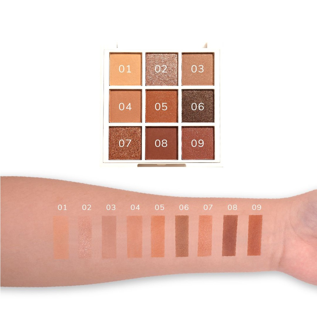 9 warna dalam 1 palette Travel-friendly Buildable Formula Smooth Texture Non-creasing Highly Pigmented Long Lasting Formula