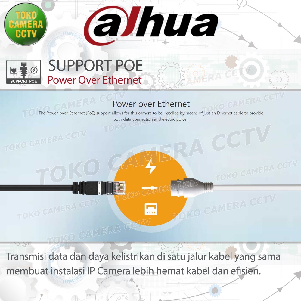 KEUNGGULAN dan FITUR : -Kamera dengan Resolusi 3MP (2304 × 1296) @20 fps. -Efficient H.265 Video Compression,lebih hemat space penyimpanan. -efficient IR illuminator,dengan jangkauan jarak hingga 30 meter. -ROI,SMART CODEC H.264+/H.265+,Codec pintar yang bisa menyesuaikan dengan bandwidth dan kapasitas penyimpanan. -Support DWDR, 3D NR, HLC, BLC, digital watermarking,yang dapat disesuaikan dengan tipe pemantauan. -Support Motion Detection dan Privacy Masking -Bisa Standalone tanpa NVR dan Support POE. -Support ONVIF (PROFILE S, PROFILE G), ISAPI, SDK,sehingga bisa di install di berbagai device meski berbeda merk. -Support Protocol IPv4/IPv6/HTTP/TCP/UDP/ARP/RTP/RTSP/RTCP/SMTP/FTP/DHCP/DNS/DDNS/NTP/Multicast -Motion detection,exception (illegal login) -IP 67 Kamera Ini tahan seburan air dan debu. -Klaim Garansi bisa di TOKO CAMERA CCTV. -Bergaransi Resmi Dahua 2 Tahun.