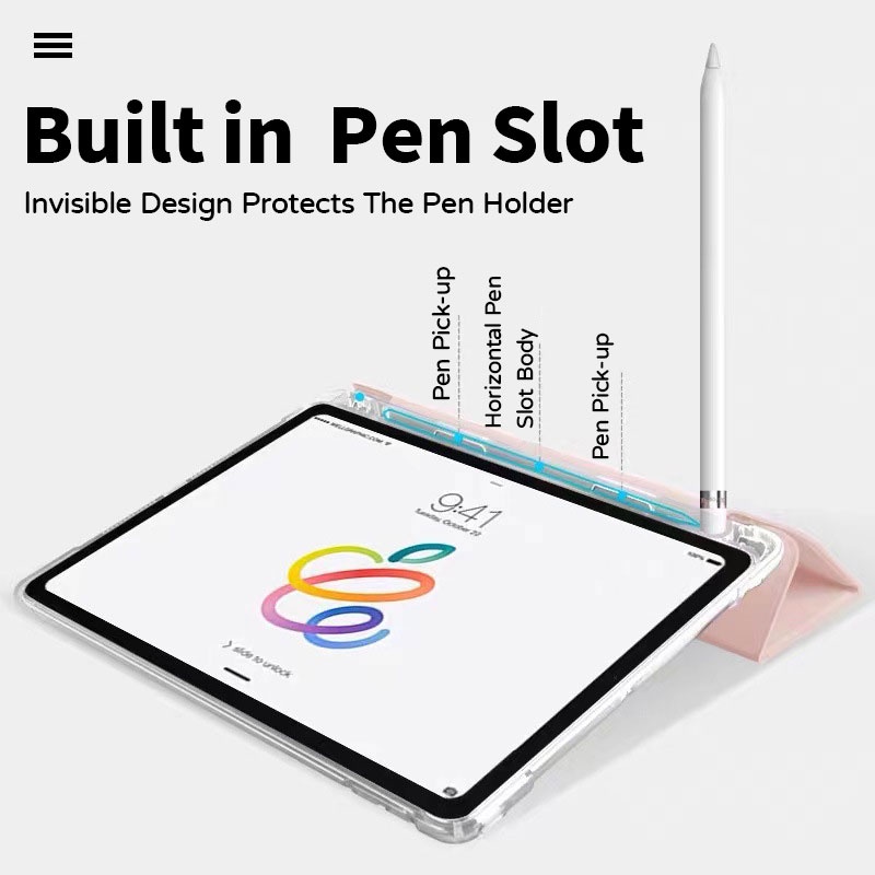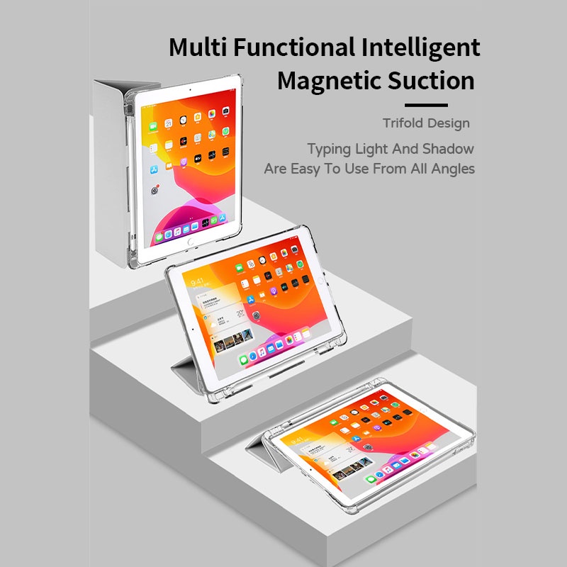 Keunggulan : 1. Material: High Quality TPU 2. 100% high quality case 3. Clear Anti-knock shockproof case , sudah ada fitur anti shock, jadi sebagai bumper ketika ipad jatuh 4. Protect surface against scratch, marks , dust , fingerprints 5. Design belakang model transaparan matte, cocok buat kamu yang suka DIY bisa taru2 stiker di belakang case. 6. With built-in magnet , Support Auto wake up & sleep ( buka tutup ipad auto lock dari cover ) 7.with pen slot