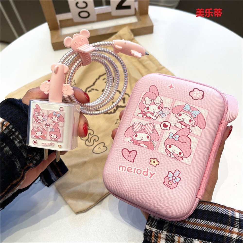 Detail IPHONE 1set Casing Pelindung Kabel Cas Sanrio Kuromi Melody Untuk Iphone18/20w Kepala Cas+Case