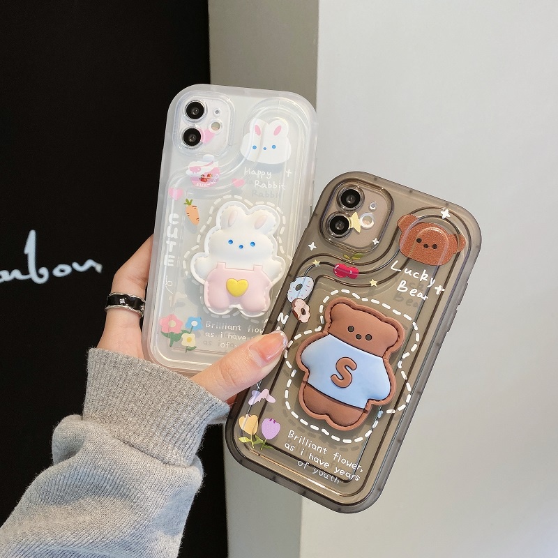 Detail IPHONE Air sac Penebalan Pelindung case Untuk Iphone14 13 12 11 Pro MAX X XR XS Max7 8 Plus Stereoskopik Kartun Beruang Kelinci Lucu Anti-drop