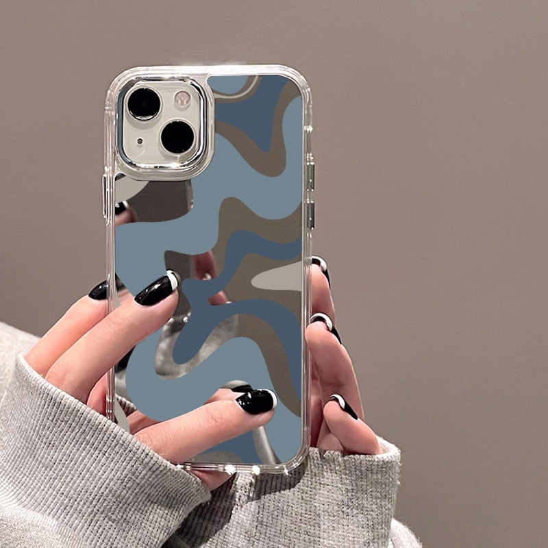 IPHONE Art Abu-Abu Biru Lukisan Cermin Ponsel Case Kompatibel Untuk Iphone11 12 13 14 12Pro 13Pro 14Pro Pro Max XR X XS Max Electroplating Tombol Perlindungan Mirror Cover