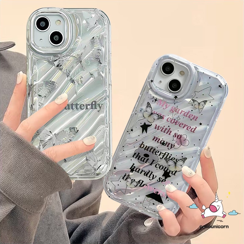 IPHONE Case Kupu-Kupu Idaman Kreatif Kompatibel Untuk Iphone11 14 13 12 Pro MAX 7Plus XR X7 8 6 6S Plus XS MAX SE 2020 3D Stereo Korgasi Huruf Sederhana Mewah Dazzle Color Card Case