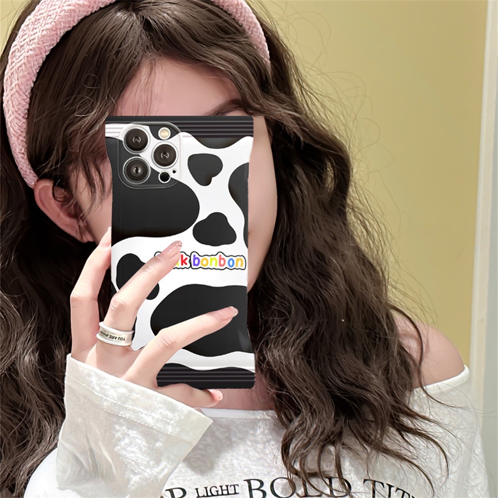 IPHONE Case Lucu Kompatibel Untuk Iphone11 13 12 14 Pro MAX iPhone7 8plus 6 6s Plus XR 14Plus XS MAX Milk Bonbon Pola Sapi Bentuk Permen Soft Phone Case RIXUAN