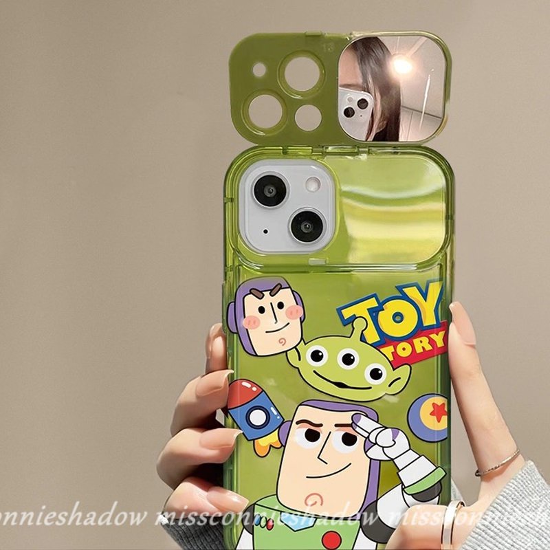 IPHONE Casing Cermin Make Up Flip Kompatibel Untuk Iphone11 14 13 12 Pro MAX 7Plus XR 7 8 14 Plus X XS MAX SE Kartun Toy Story Buzz Lightyear Cute Manyo Strawberry Bear Shockproof Cover