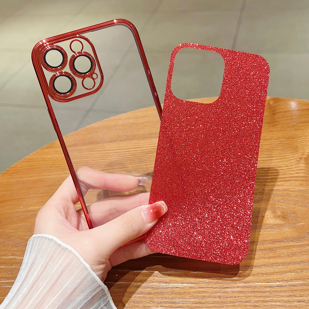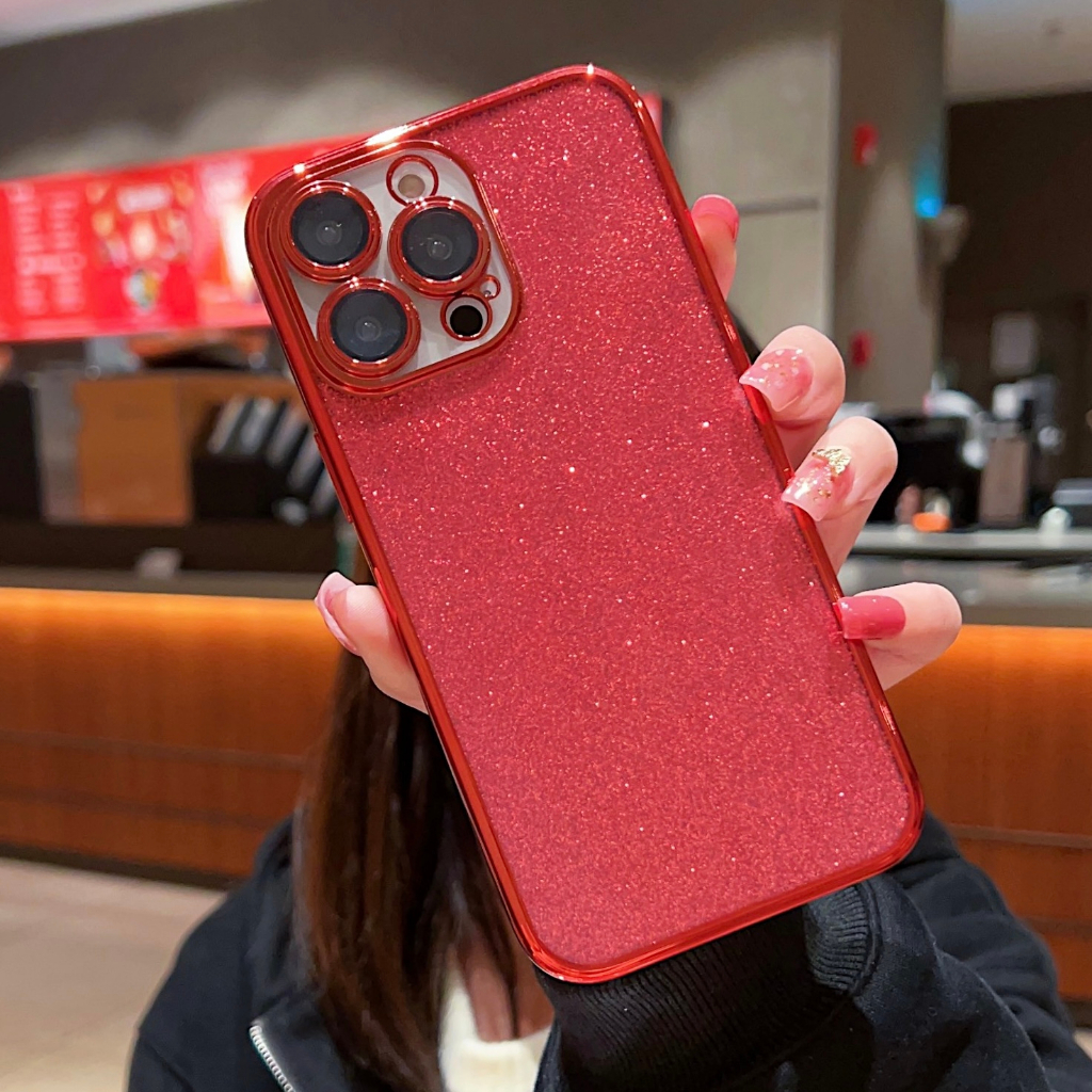 IPHONE Casing Electroplate Merah Lembut Mengkilap Mewah Untuk Iphone11 12 13 14 Pro Max X XS XR 6 6S 7 8 Plus SE 2020 Mini Bling Glitter Cases Cover Case Penutup Pelindung