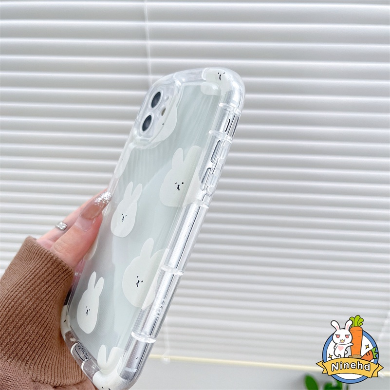 IPHONE Casing Kompatibel Untuk Iphone14 13 12 11 Pro Max X Xr Xs Max8 7 6 6s Plus Se2020Motif Lucu Kelinci Putih Airbag Telepon Case Bening Shockproof Soft Silicone Case Cover Pelindung