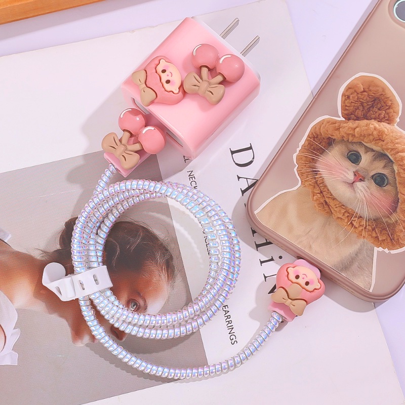 Detail IPHONE Casing Pelindung Charger Silikon Lembut/Kartun Gadis Ceri Anti Putus Kabel Data Spiral Winder/Penutup Pelindung Colokan Charger Untuk Charger Iphone5 /18 /20W