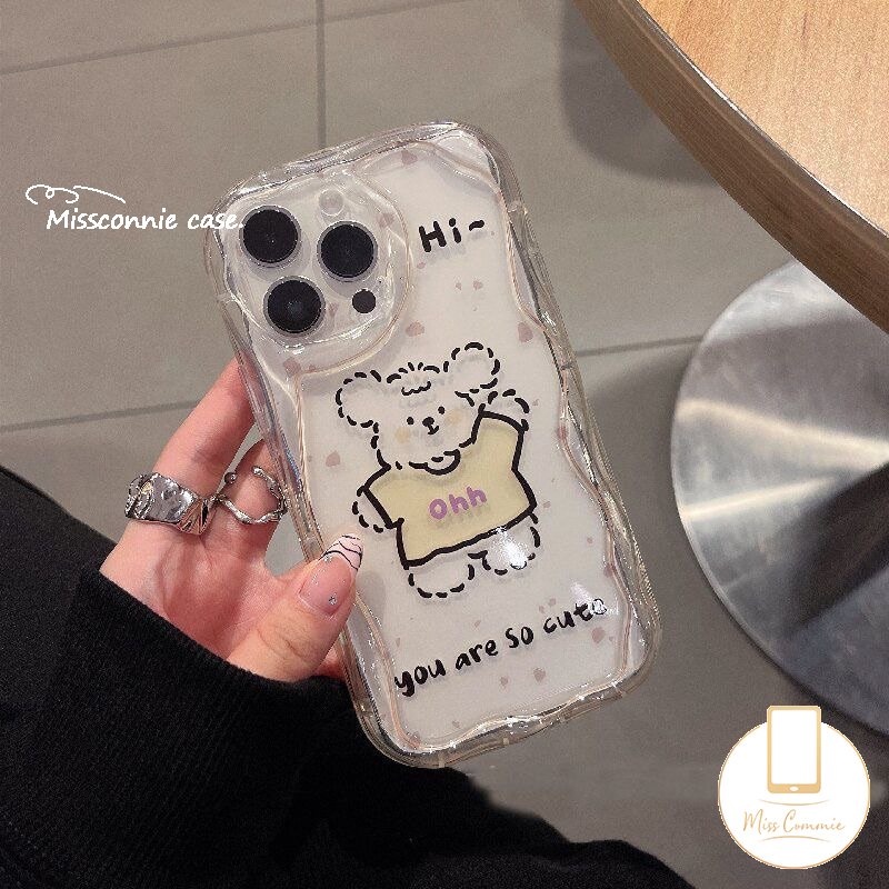 Handphone & Aksesoris > Casing & Skin > Casing & Skin Handphone > IPHONE Casing Ponsel Beruang Indah Kompatibel Untuk Iphone11 12 14 13 Pro Max 7Plus X XR 7 6 8 6s Plus XS Max SE 2020kartun Beruang Lucu Es Krim Teh Susu Puppy 3D Bergelombang Melengkung Penutup Tepi
