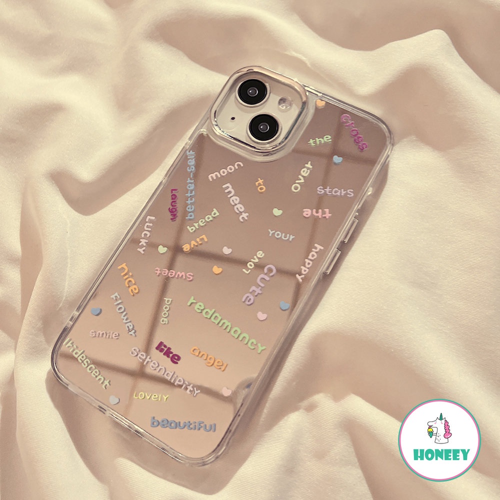 Handphone & Aksesoris > Casing & Skin > Casing & Skin Handphone > IPHONE Casing Ponsel Cermin Rias Bahasa Inggris Warna-Warni Kompatibel Untuk Iphone14 Pro Max13 12/12pro Case Iphone11Stiker Berlian Mengkilap Penutup Belakang