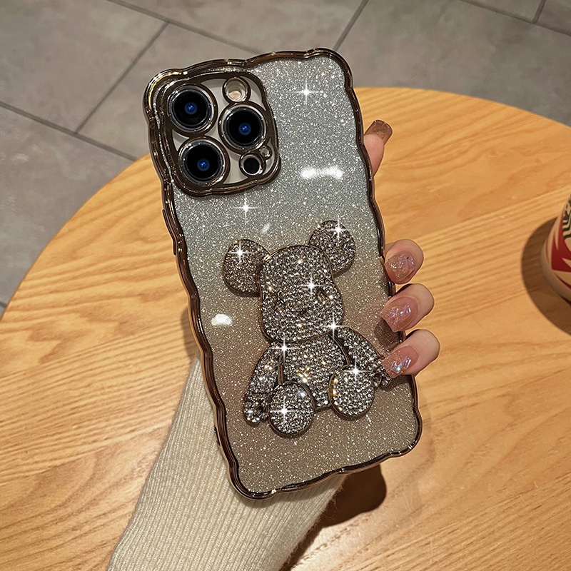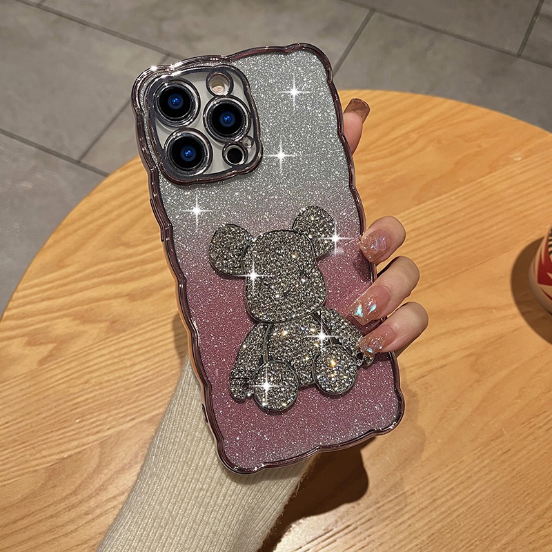 IPHONE Casing Ponsel Gradasi Beruang Bubuk Glitter Motif Riak Kompatibel Dengan Iphone14 Pro Max13 Pro Max12 Pro Max 11 Pro Max14 Plus Casing Pencegah Jatuh
