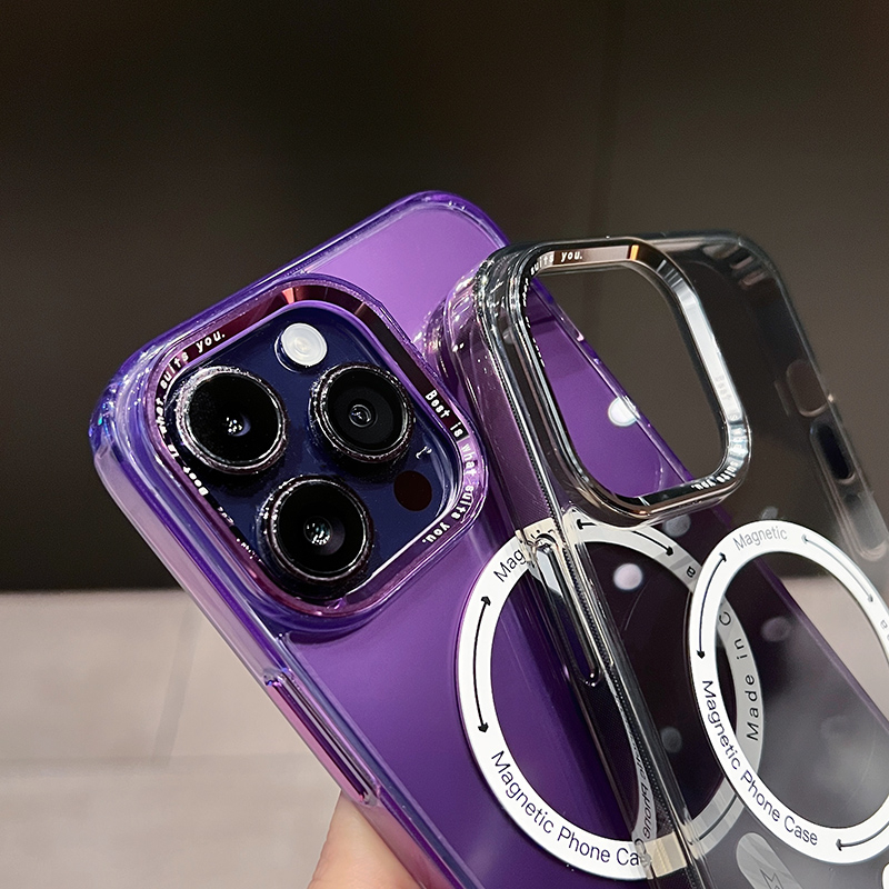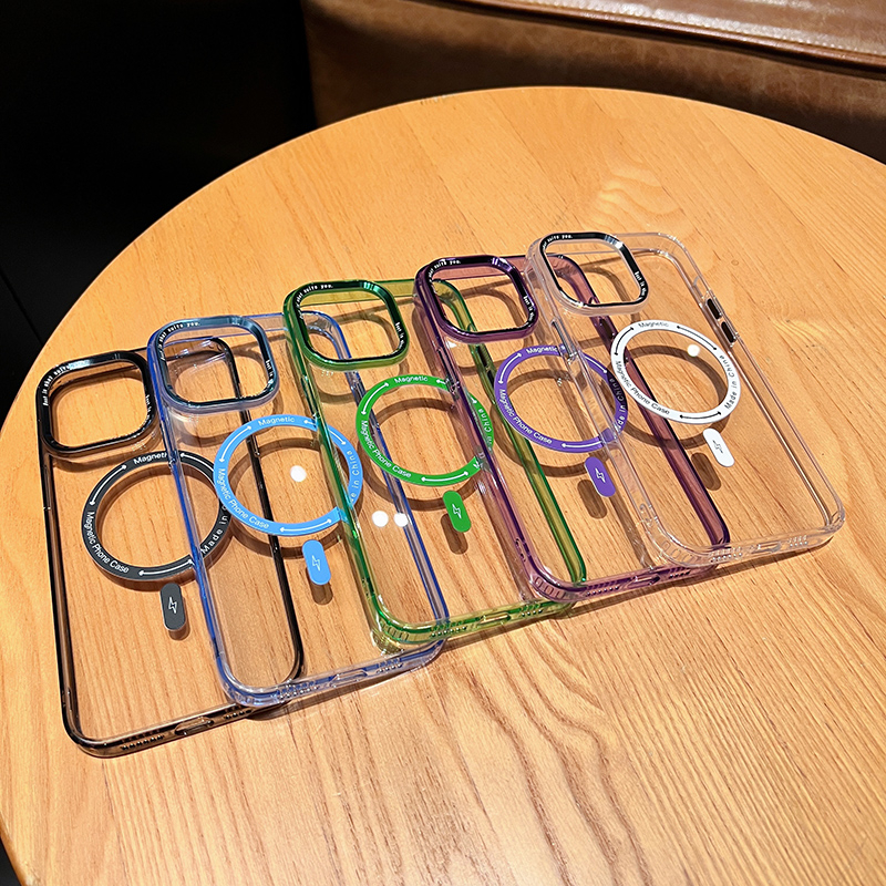Handphone & Aksesoris > Casing & Skin > Casing & Skin Handphone > IPHONE Casing Ponsel Magnetik Bahan Metal Transparan Cas Nirkabel Untuk Iphone14 13 12 Pro Max Case Es Kristal Hard Case Cover