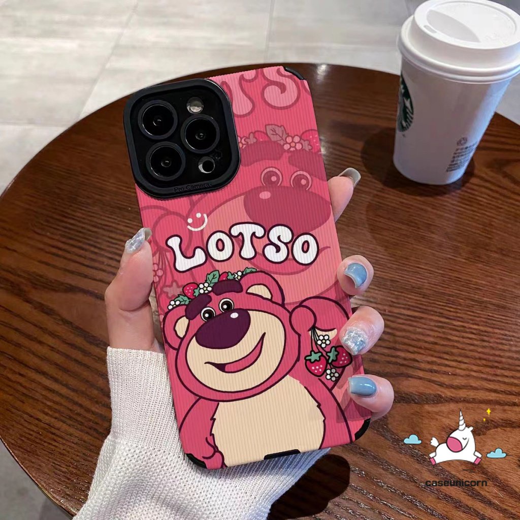 Tekstur Kulit Mewah Casing Ponsel Silikon Lembut Kompatibel Untuk iPhone 11 12 13 14 Pro MAX 7 8 Plus X XR XS MAX 7Plus Kartun Lucu Lotso Strawberry Bear Shockproof Cover