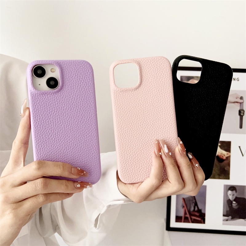 Handphone & Aksesoris > Casing & Skin > Casing & Skin Handphone > IPHONE Casing Ponsel Warna solid Bahan Kulit Untuk Iphone12 13 14 Pro max hard case Tipis Dan Ringan14 plus Casing PC non-slip Tepi Lurus Minimalis Apple12