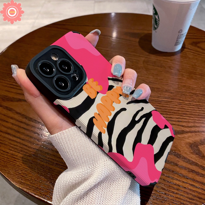 IPHONE Casing Ponsel Zebra Cinta Hati Gaya Fashion Kreatif Kompatibel Untuk Iphone11 14 13 12 Pro Max XR 7 8 Plus X XS Max Shockproof Case Back Cover