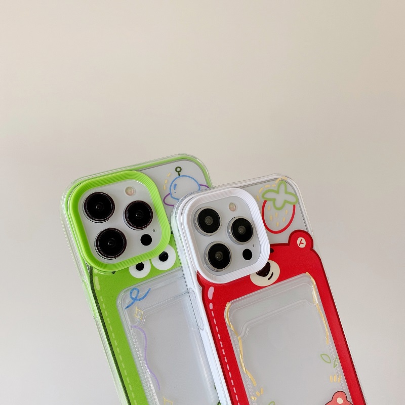 Detail IPHONE Casing Transparan Desain Lengan Kartu 3in1 Untuk Iphone14 13 12 11 Pro Max X XR XS Max7 8 Plus Beruang strawberry Aneh Bermata Tiga
