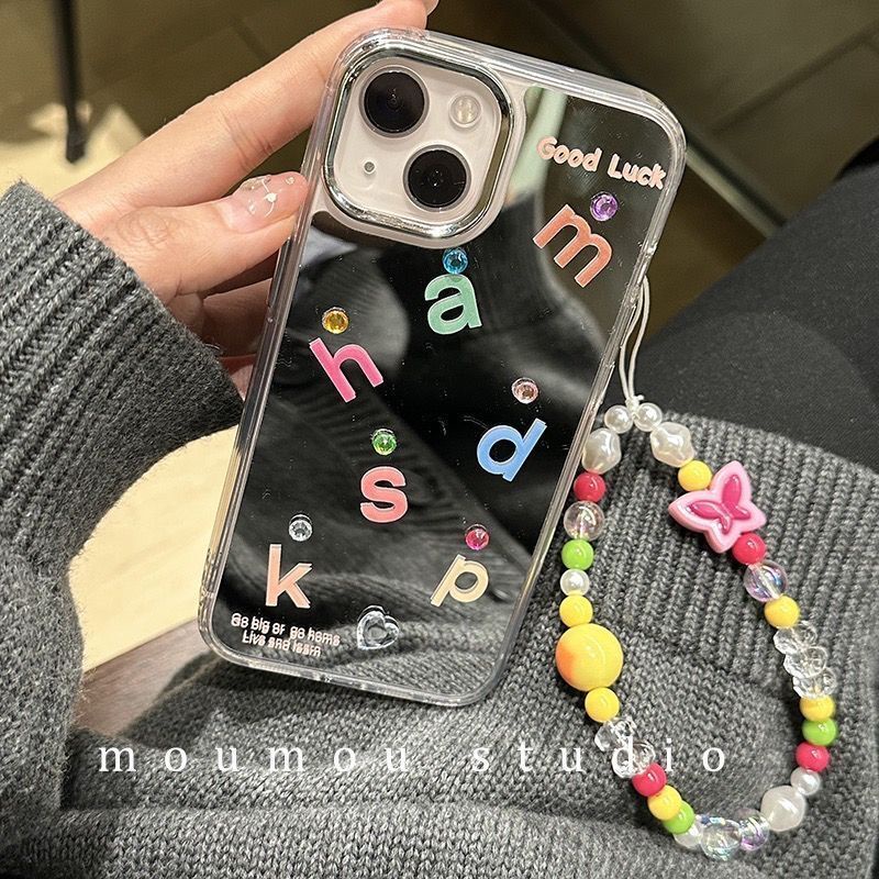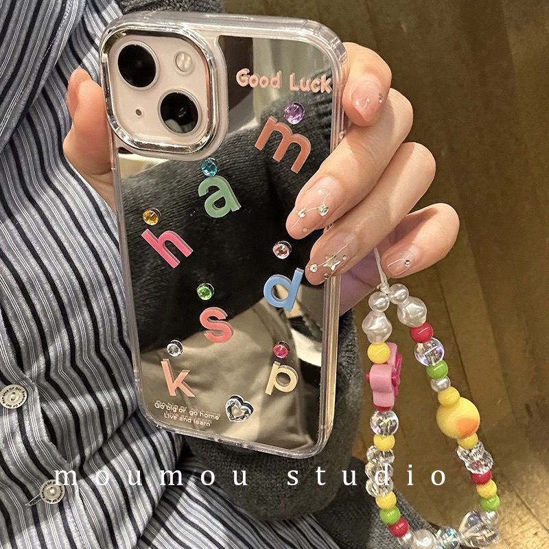 Detail IPHONE Cermin Wajah Huruf Keberuntungan Diy Desain Rantai Stik Berlian Casing Ponsel Kompatibel Dengan Iphone12 13 14 11 Pro Max X Xs Max Xr Drsfc