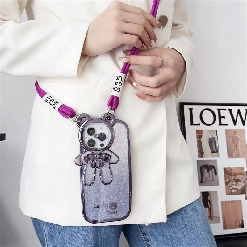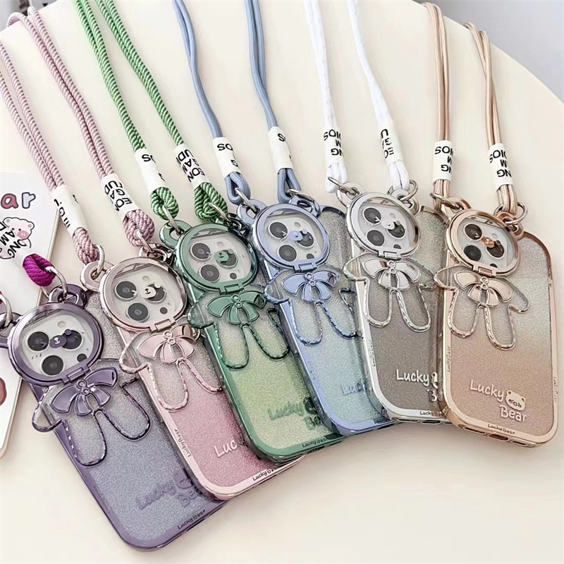Handphone & Aksesoris > Casing & Skin > Casing & Skin Handphone > IPHONE [Free Lanyard Panjang] Casing Ponsel Beruang Keberuntungan glitter Gradasi Mewah Iphone7Plus8 Plus X XS Max XR 11 Pro Max 14 Pro Max 13 Pro Max 12 Pro Max Pencegah Jatuh Soft Casing
