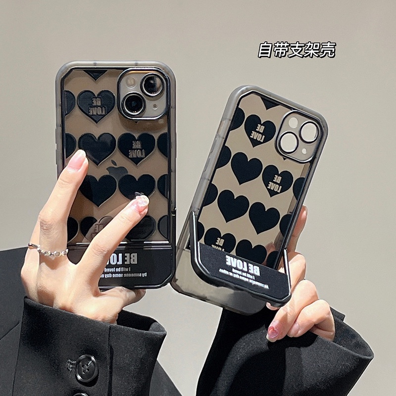 Handphone & Aksesoris > Casing & Skin > Casing & Skin Handphone > IPHONE Hitam Cinta Hati Transparan Tak Terlihat Lipat Holder Phone Case Cover Untuk Iphone7 8 PLUS X XR XS 11 12 13 14 PRO MAX SE 2020