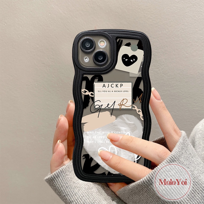 IPHONE Ins Lucu Cinta Hati Graffiti Case Kompatibel Untuk Iphone14 13 12 11 Pro Max 7plus 8plus 6 6s 8 7 Plus XR 14Plus X XS Max SE 2020 Comme des Garcons Lembut TPU Cover