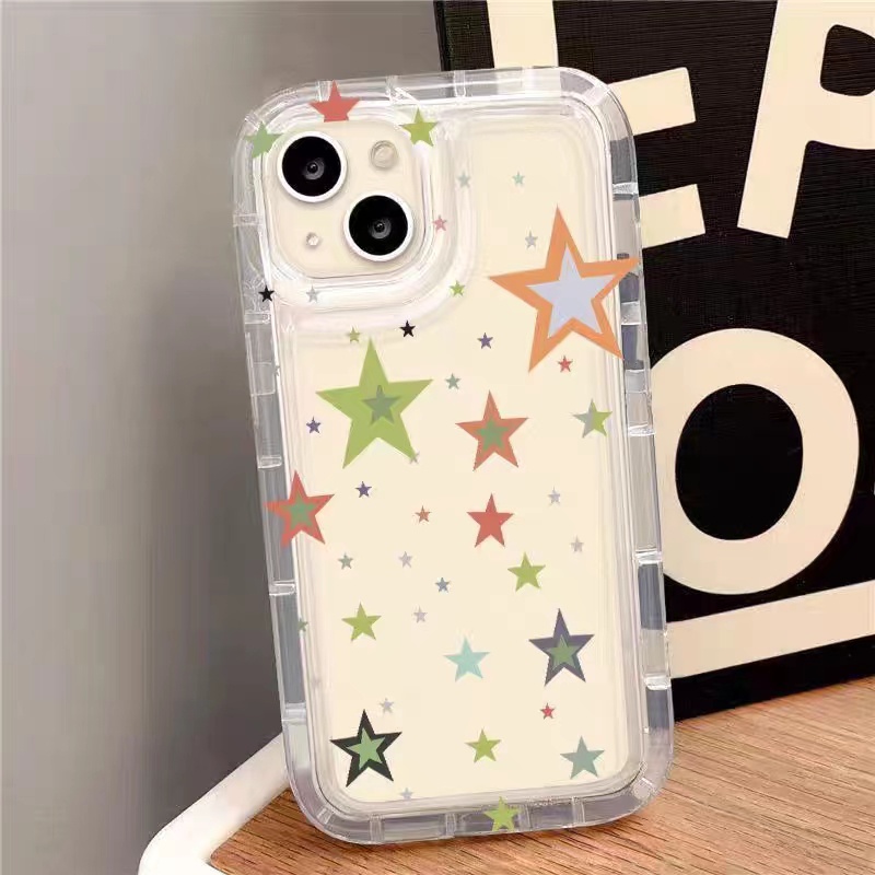 IPHONE Ins Star Phone Case Cocok Untuk Iphone11 14 14pro 14plus 13 13mini 13pro 13prm iPhone12 7Plus 8Plus Xr XS 13 12mini Pro Max Empat Sudut Casing Ponsel Transparan Tahan Guncangan