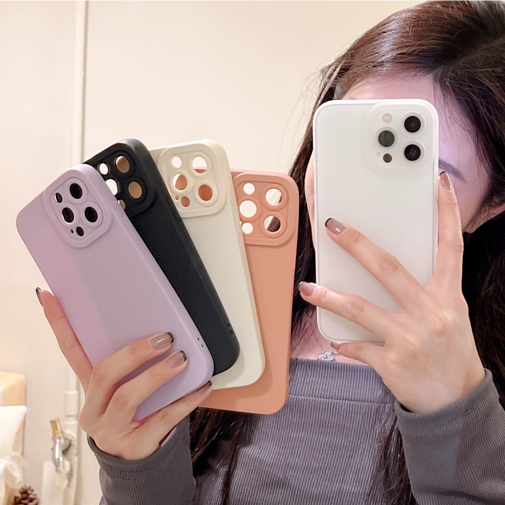 Handphone & Aksesoris > Casing & Skin > Casing & Skin Handphone > IPHONE Ins Style Simple Pure Color Skin Friendly Phone Case Untuk Iphone14 13 12 11 Pro Max X XS Max XR 78 Plus Canggih Shockproof Dan Tahan Jatuh