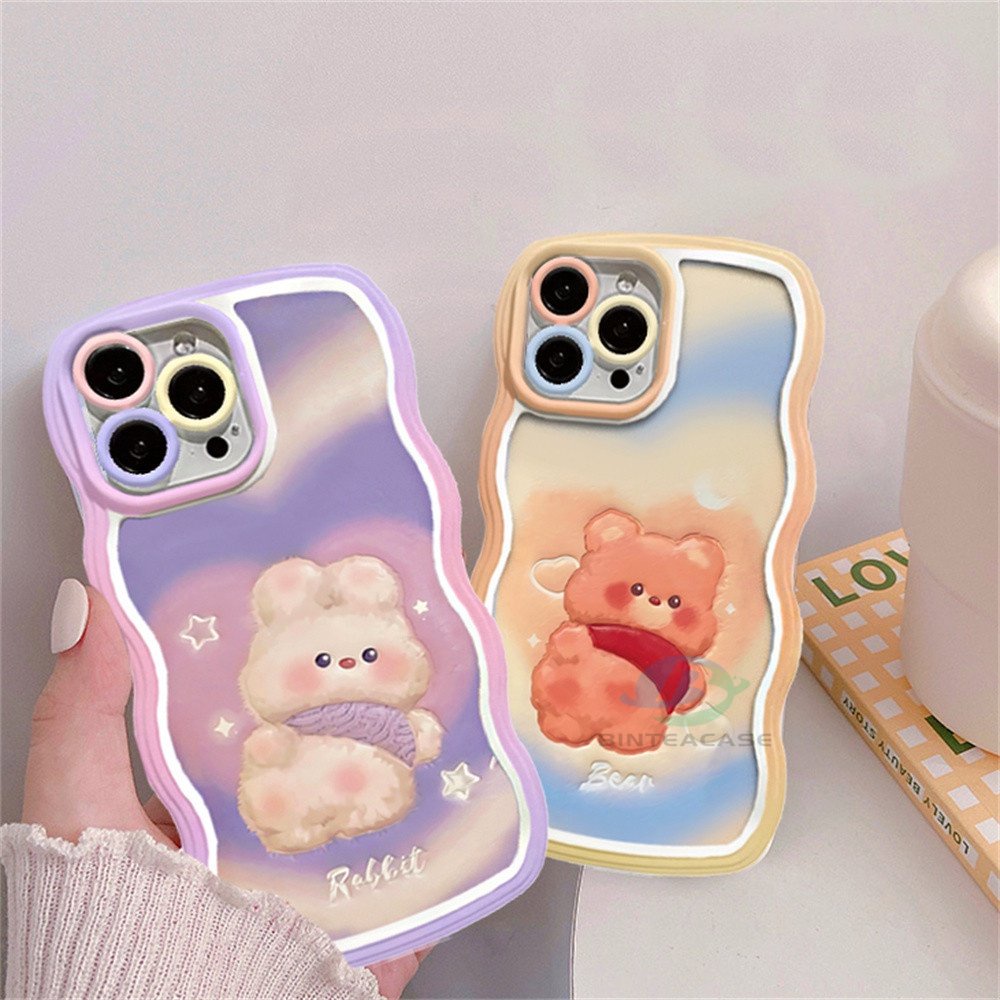 Handphone & Aksesoris > Casing & Skin > Casing & Skin Handphone > IPHONE Iphone14 14 Pro MAX IPhone13 Pro MAX 11PRO 11PRO MAX 12 12Pro MAX XR XS Max6 6S 7 8 Plus SE 2020 Doodle Love Dan Beruang Kecil Lucu Kelinci Tepi Melengkung TPU Phone Case Binteacase