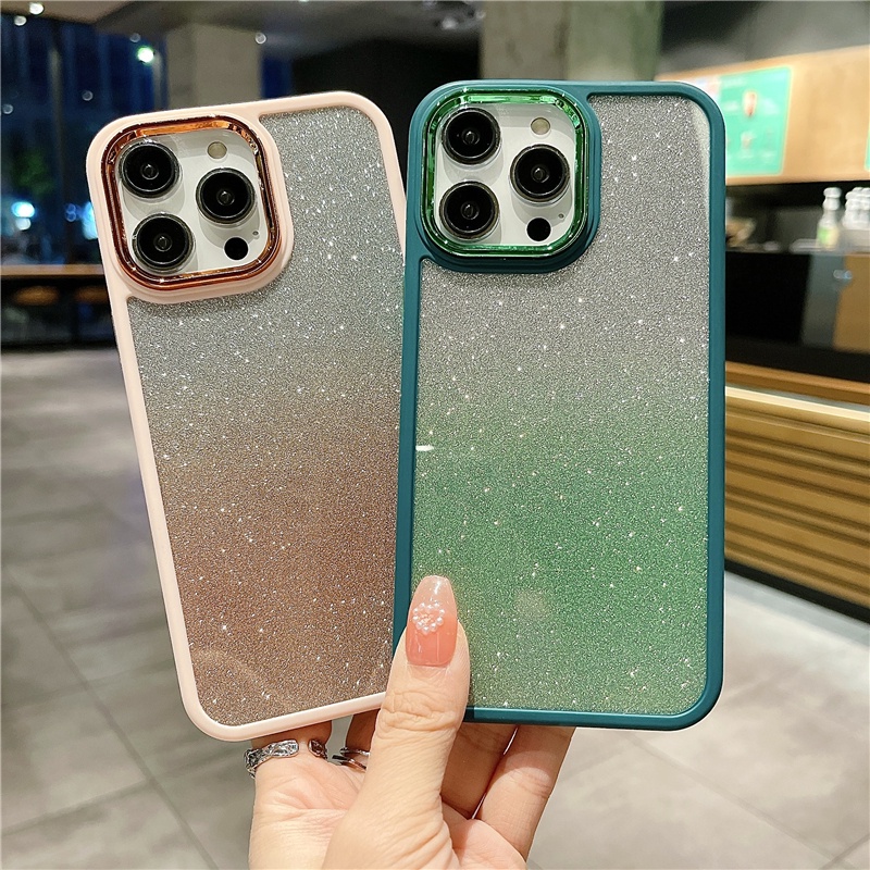 Detail IPHONE Jam Kertas Gradasi Glitter+Plat Belakang Transparan Akrilik Electroplated Untuk Iphone14 13 12 11 Pro Max Hard Casing Pelindung