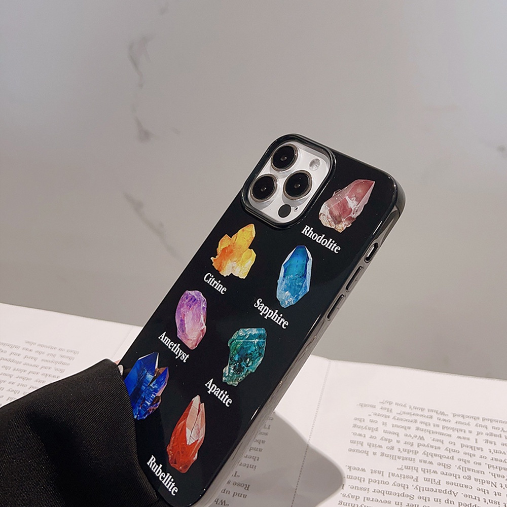 Handphone & Aksesoris > Casing & Skin > Casing & Skin Handphone > IPHONE Kristal Mineral Alami Kuarsa Batu Permata Dicetak Ponsel Jelly Hitam Glossy Soft Case Cover Untuk Iphone7 8 PLUS X XR XS 11 12 13 14 MINI PRO MAX Se2020