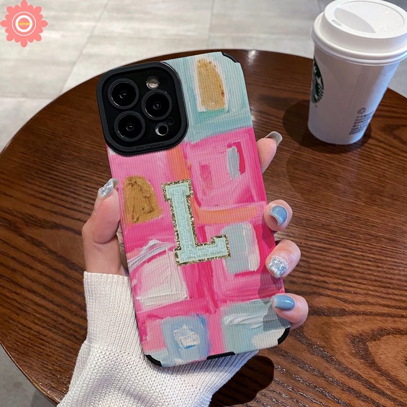 IPHONE Lukisan Cat Minyak Graffiti Huruf L Bahasa Inggris Ponsel Case Kompatibel Untuk Iphone7 8 Plus XR 11 13 12 14 Pro MAX X XS MAX 7Plus Kreatif Shockproof Kulit Tekstur Cover