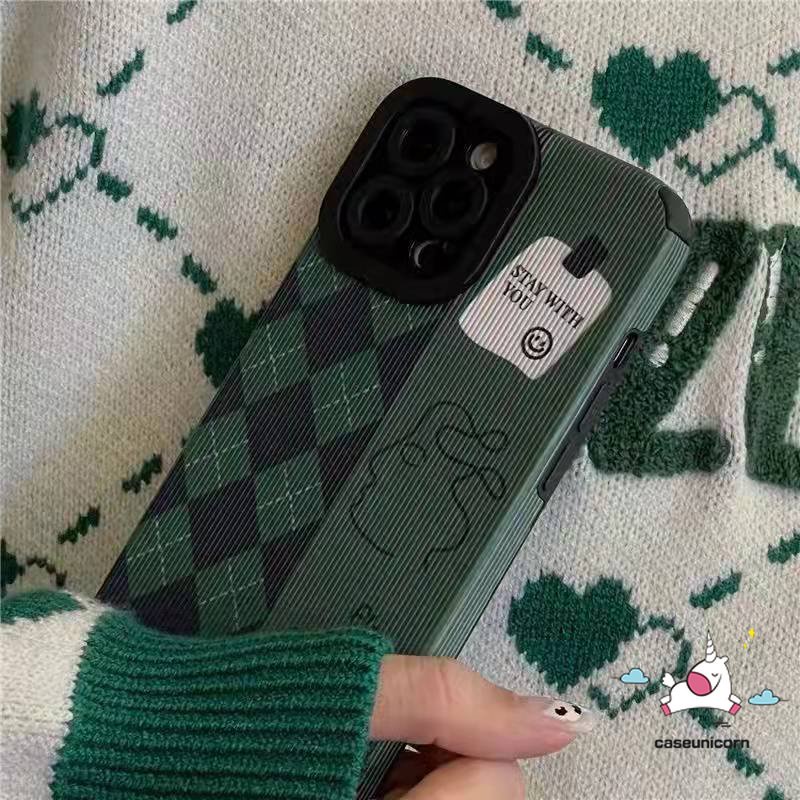 IPHONE Luxury Retro Hijau Ringer Lattice Shockproof Case Kompatibel Untuk Iphone11 13 XR 12 14 Pro 7Plus Max7 8 Plus X XS MAX Retro Flowers Trendi Merek D.I.O.R Lembut Tekstur Kulit Cover