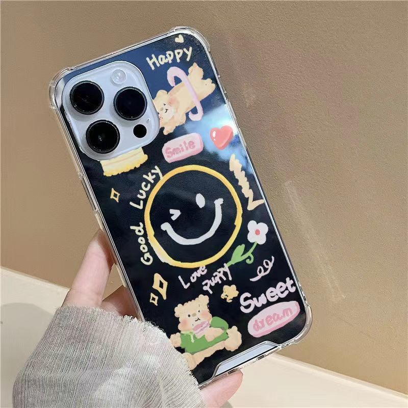 Detail IPHONE Mirror Face Beruang Kuning Desain Wajah Tersenyum Casing Ponsel Kompatibel Dengan Iphone12 13 14 11 Pro Max Ddswr